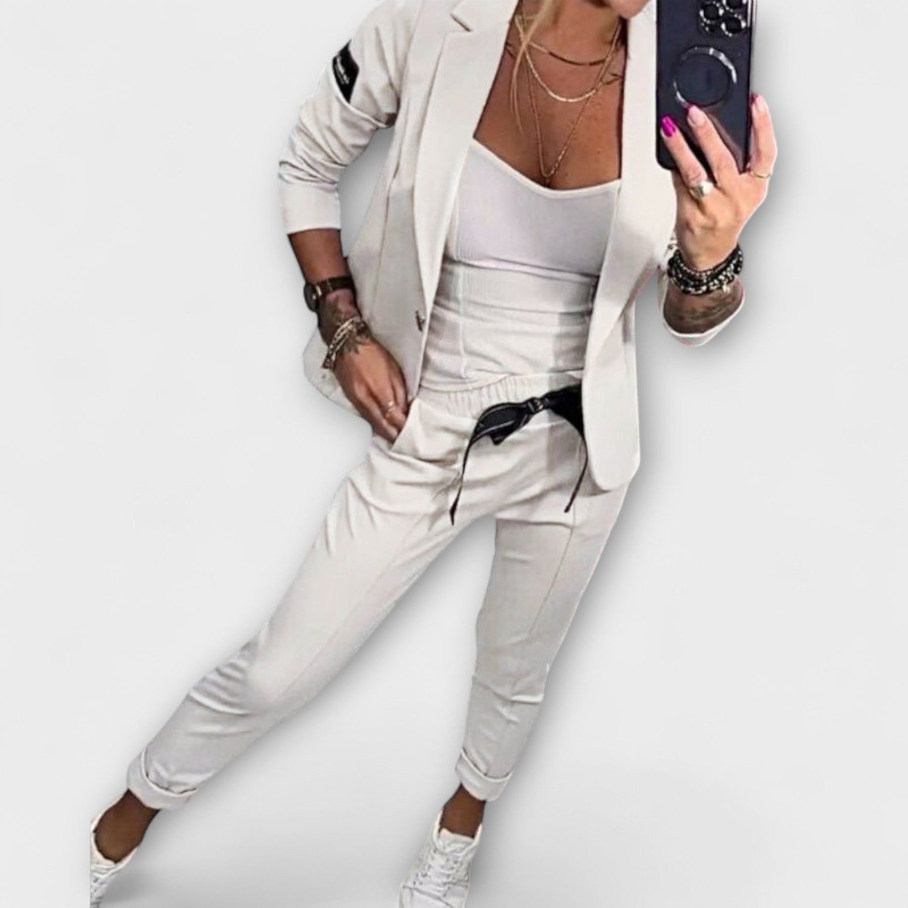 This stylish ensemble offers a polished, cohesive look suitable for any occasion.