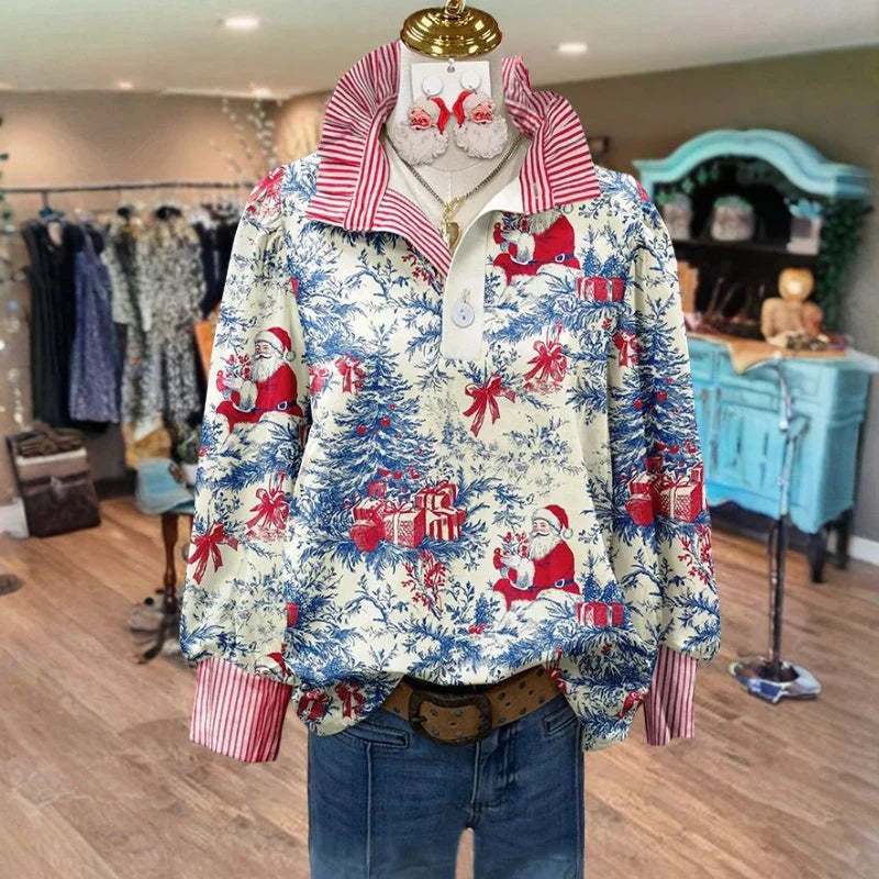 POV: The sun peeks through crisp morning air as you slip on your Laurel Blouse — soft yet structured, with just enough personality to brighten your day. The subtle floral-and-stripe pattern catches the eye without overpowering, while the tailored silhouette keeps your look refined. Whether layered over a blouse for work or styled casually with denim, it brings a touch of artistry to your every move.